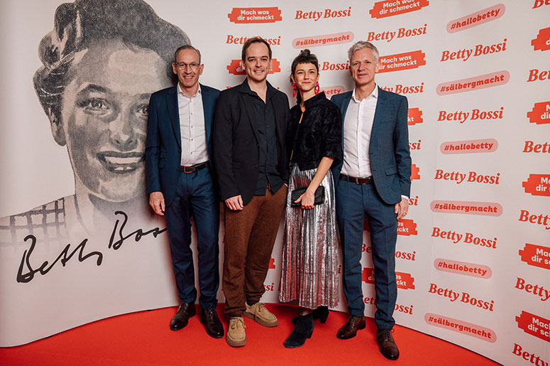Coop-CEO Philipp Wyss und Betty-Bossi-CEO Lars Feldmann mit den Hauptdarstellern Sarah Spale und Martin Vischer